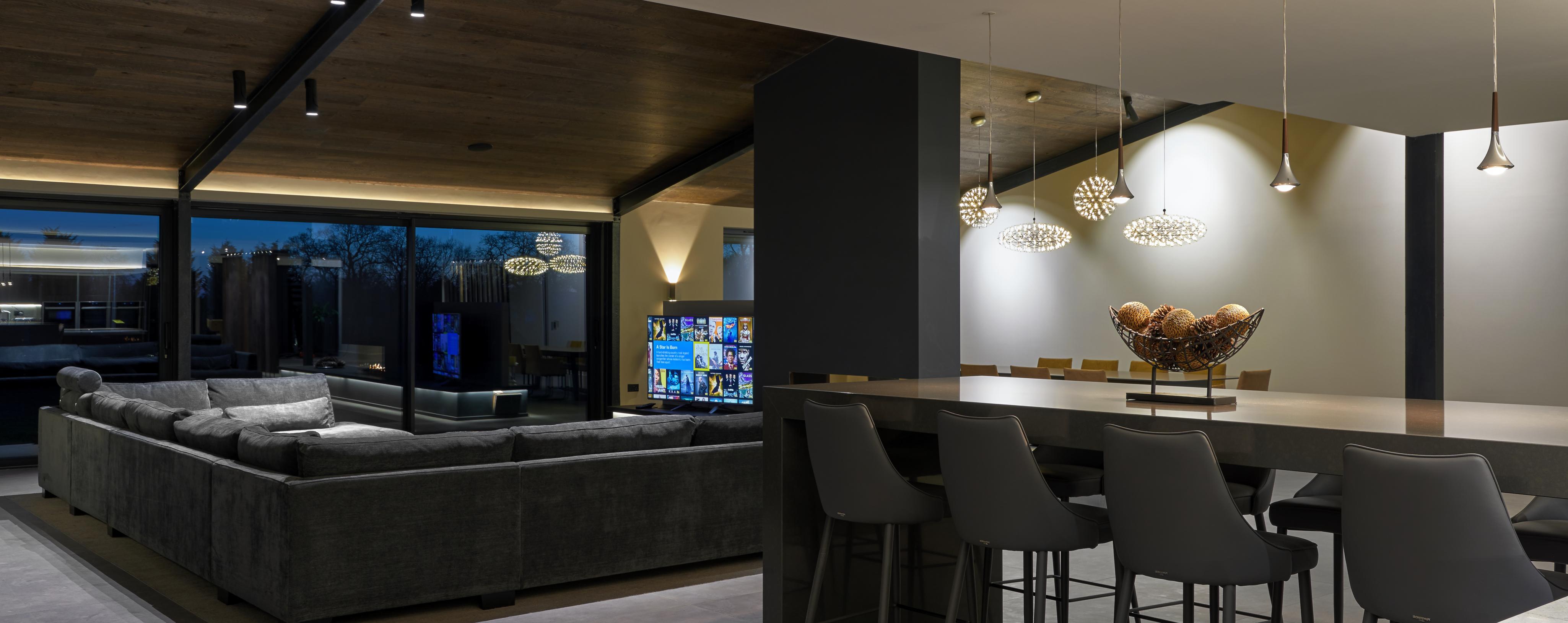 Comprehensive solutions tailored to your needs, including Lighting Design and Control, Audio/Visual Systems, Data and Wi-Fi Optimization, Home Cinema Installations, Smart Home Automation, Heating and Cooling Controls, Landscape Lighting and Control, and Advanced Security Camera Systems. Penegoes Powys/Powys .